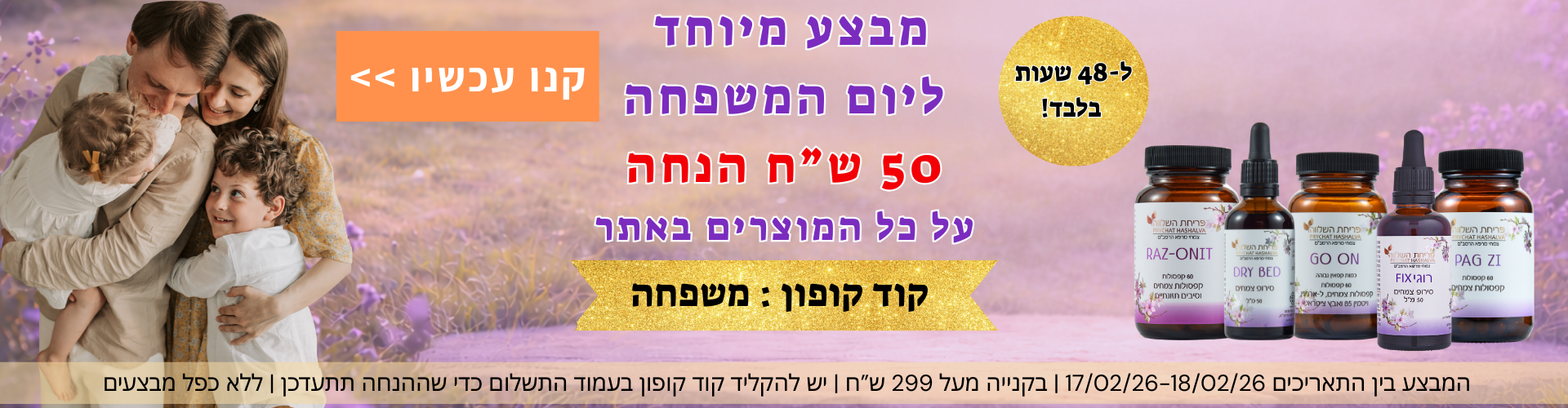 לידיעתך, באתר פריחת השלווה נעשה שימוש בקבצי Cookies, המשך גלישה באתר מהווה הסכמה לשימוש זה, למידע נוסף ניתן לעיין במדיניות הפרטיות מדיניות הפרטיות.