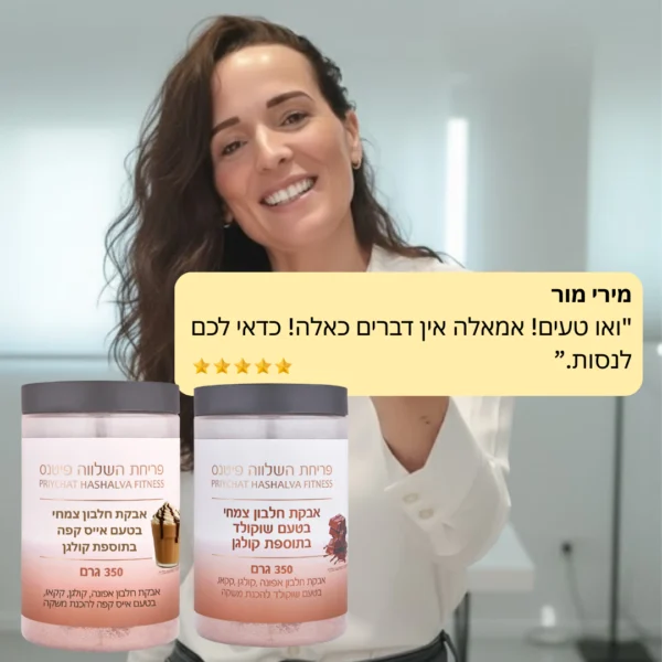 אבקת חלבון צמחי בטעם אייס קפה עם קולגן – שילוב ייחודי של מתן שובע, טעם מפנק ונוחות. האבקה מבוססת על חלבון אפונה איכותי, התורם למסת שריר, בתוספת קולגן דגים התומך בשיער, בעור ובציפורניים, יחד עם אבקת קקאו טבעית, תמצית טעם אייס קפה ואבקת פרי הנזירים (Monk Fruit) כממתיק טבעי.