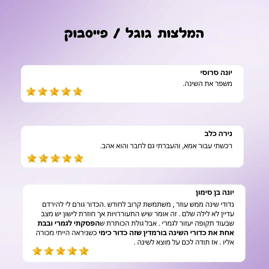 ממש עזר לי באיכות השינה, תוספת ענקית לאיכות חיים. מומלץ בחום!